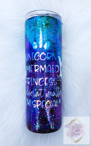 Super sparkly personalized glitter stainless steel tumblers. I only use high quality glitter on all of my tumblers. This glitter will not lose its sparkle, dull, is UV resistant, and will hold up in high temperatures.
