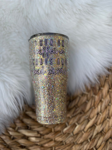 I Run on Caffeine Glitter Tumbler